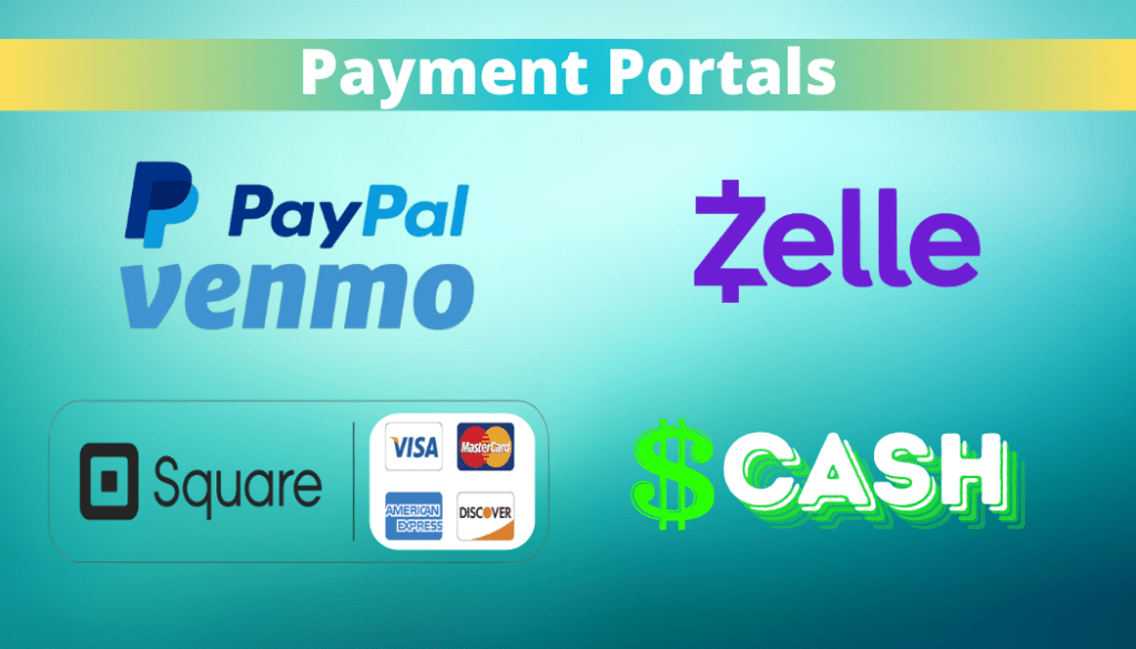 We accept Cash, Venmo, PayPal, Zelle, or Credit Card.